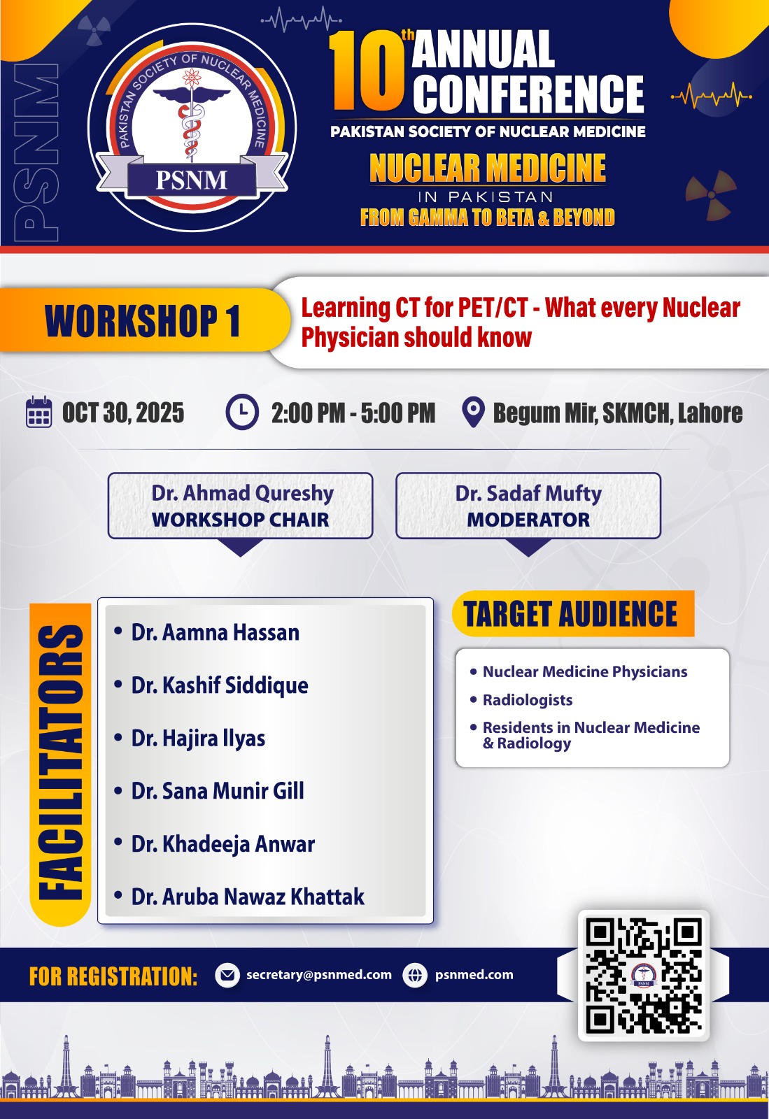 Pre-Conference Workshop 1: Learning CT for PET/CT - What every Nuclear Physician should know, Date: 30-10-2025, Time: 2 pm to 5 pm, Venue: Begum Mir, SKMCH, Lahore